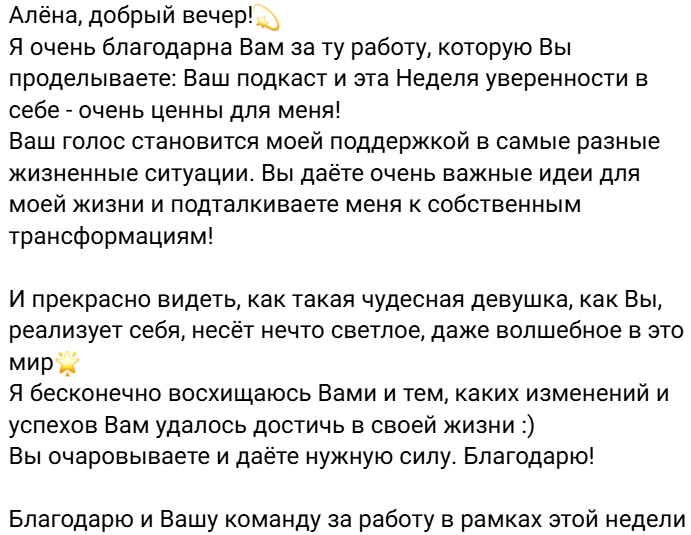 Уверенность в себе - это основа, благодаря которой сегодня я могу быть мамой четверых и одновременно вести популярный подкаст, издать книгу вместе с крупнейшим издательством, а также развивать прекрасную селф-коучинговую программу.